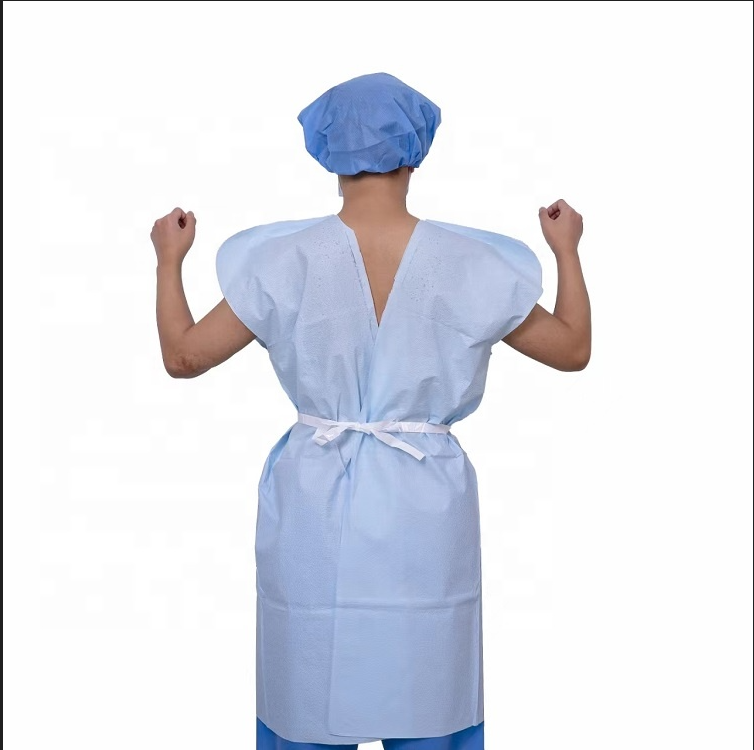 Product Features:Material:Paper+PE film+Paper Usage:Patient Gown Thickness: 16gsm Paper+12gsm PE film+16gsm Paper Style: Short Sleeve Long Sleeve Customized